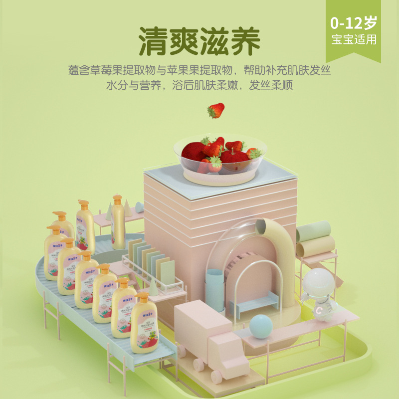 亲护小蜗宝宝洗护二合一500g无泪婴儿童保湿洗发水沐浴露
