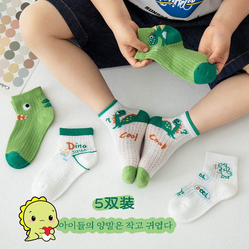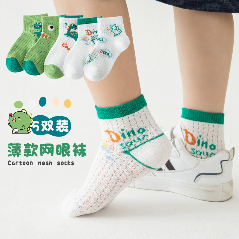 商品名称:儿童袜子2023夏季新款卡通恐龙船袜中大童精梳棉童袜网眼男童袜子