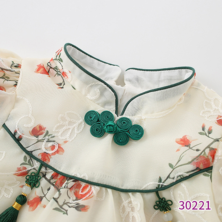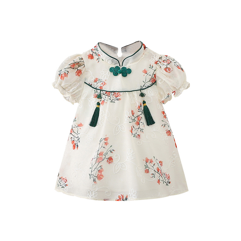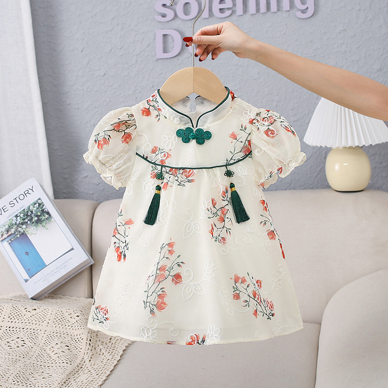 商品名称:天静童装2023年夏季新款女童连衣裙 中国风儿童短袖旗袍汉服裙