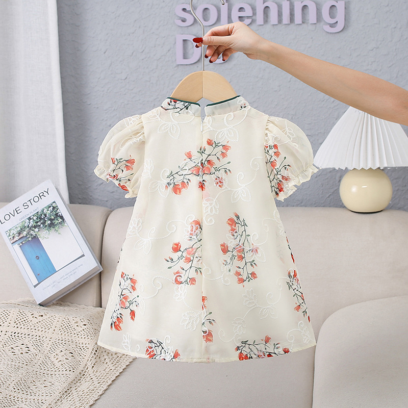 天静童装2023年夏季新款女童连衣裙 中国风儿童短袖旗袍汉服裙