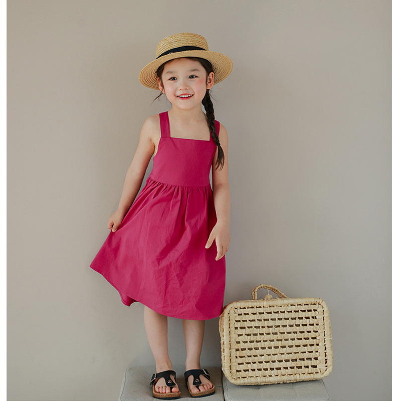 杰拉童装女童吊带连衣裙2024夏季新款儿童韩版纯色薄款纯棉吊带裙
