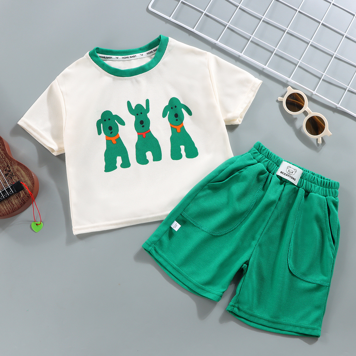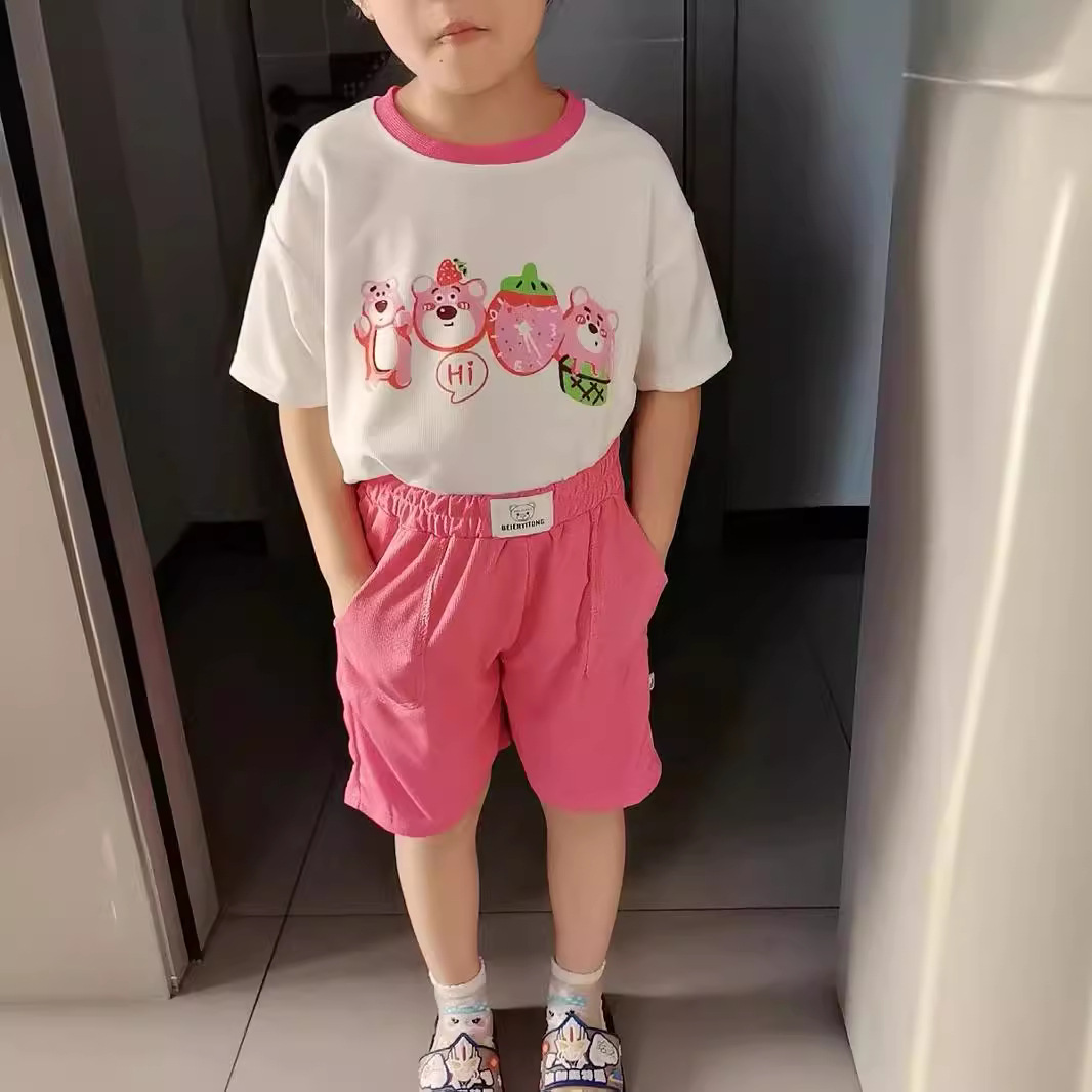 商品名称:新款童装夏季儿童套装休闲宽松衣服男女童华夫格短袖夏季
