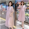 2023新款连衣裙孕妇装娃娃领休闲气质中长款短袖翻领气质连衣裙女