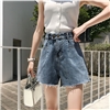实拍夏季新款牛仔高腰短裤复古韩版时尚女装破洞休闲宽松牛仔短裤