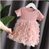 夏装新款童装女童宝宝连衣裙公主纱裙洋气蓬蓬拼接蛋糕裙夏装